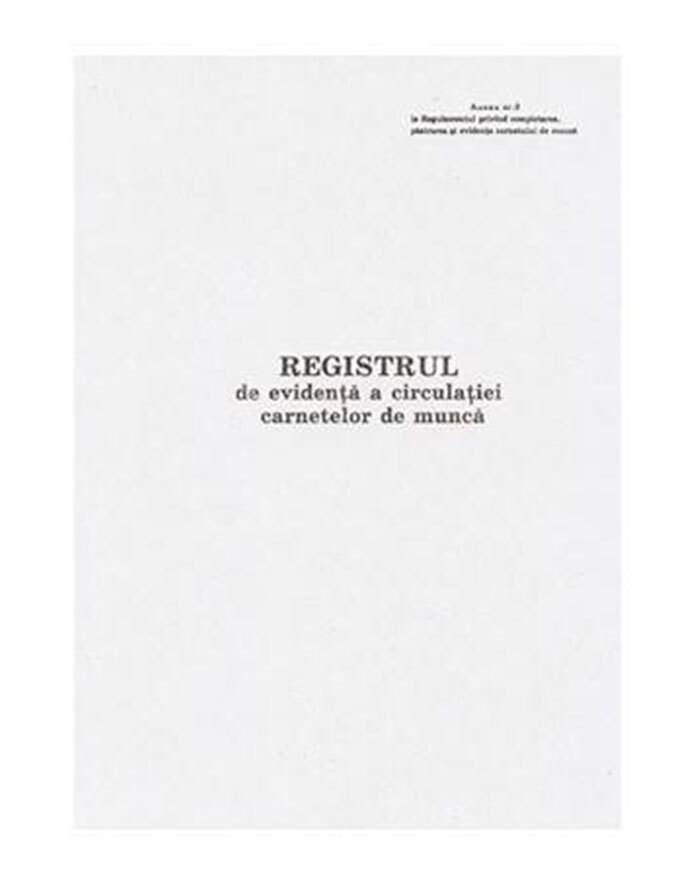 Registru de evidenta a circulatie carnetelor de munca, cu 50 file, produsa din hirtie alba, offset, de calitate inalta.
